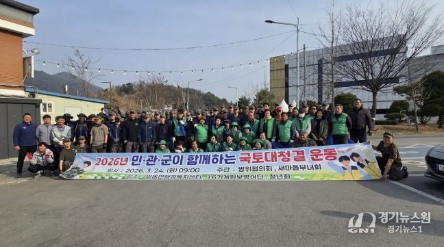 [경기뉴스원/경기뉴스1] | 포천시 일동면 행정복지센터는 지난 24일 봄을 맞아 마을안길과 도로변 일원에서 민관군이 함께하는 국토대청소를 실시했다.