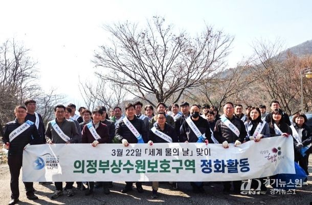 [경기뉴스원/경기뉴스1] | 의정부시는 ‘세계 물의 날’을 맞아 시민들의 안전한 식수원 보호와 수질 개선을 위해 3월 24일 홍복저수지 일원 상수원보호구역에서 정화 활동을 실시했다.