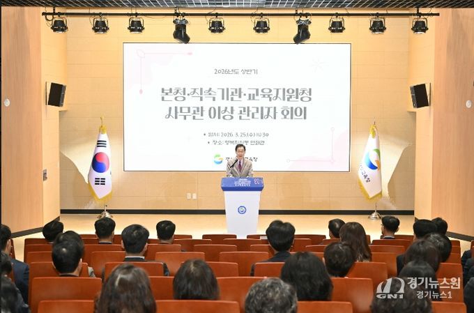 [경기뉴스원/경기뉴스1] | 경북교육청은 25일 본청 행복지원동 연화관에서 본청과 직속기관, 교육지원청 소속 일반직 사무관 이상 관리자 120여 명이 참석한 가운데 상반기 관리자 회의를 개최했다고 밝혔다.