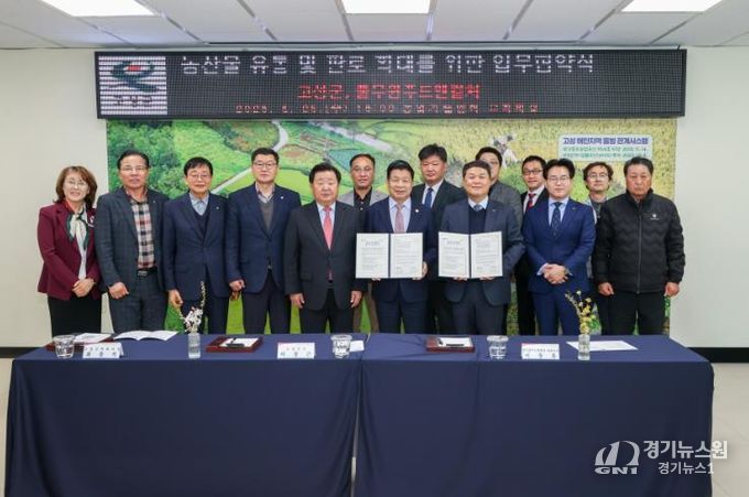 [경기뉴스원/경기뉴스1] | 고성군(군수 이상근)은 3월 25일 고성군 농업기술센터 소회의실에서 농산물 유통 및 판로 확대를 위한 업무협약(MOU)을 체결했다.
