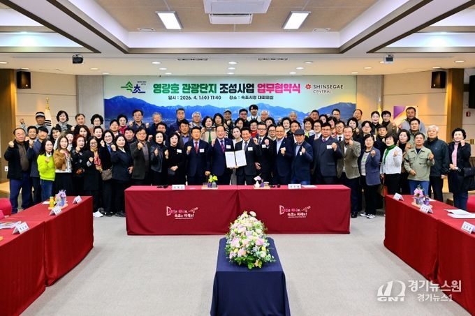 [경기뉴스원/경기뉴스1] | 속초시는 2026년 4월 1일 시청 대회의실에서 영랑호 관광단지 조성사업의 성공적인 추진을 위해 민간사업자인 ㈜신세계센트럴과 업무협약을 체결했다.