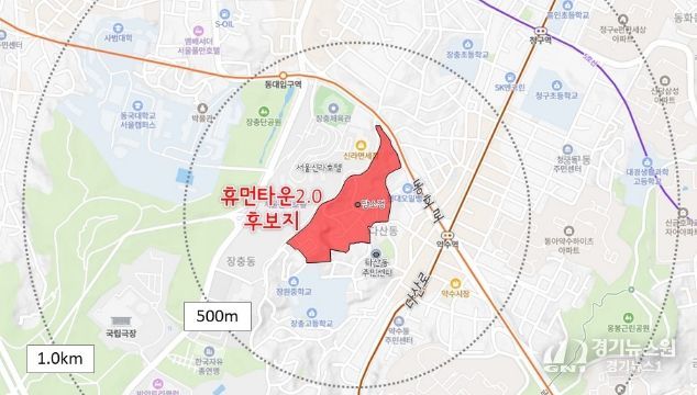 다산동 일대(신당동 432-24번지) 약 51,448㎡는 남산 고도지구 완화 이후 서울시 공모사업인 '휴먼타운 2.0' 후보지로 선정된 지역이다. 최대 100억 원 규모의 시비를 지원받아 대규모 재개발이 어려운 저층주거지를 대상으로 주택정비 지원과 생활기반시설 확충을 병행하는 방식의 주거환경 개선 사업이 추진된다. 현재는 후보지 단계로, 사업계획(안)에 대해 서울시와 협의를 거쳐, 사업계획 고시 이후 사업을 본격적으로 추진할 예정이다.