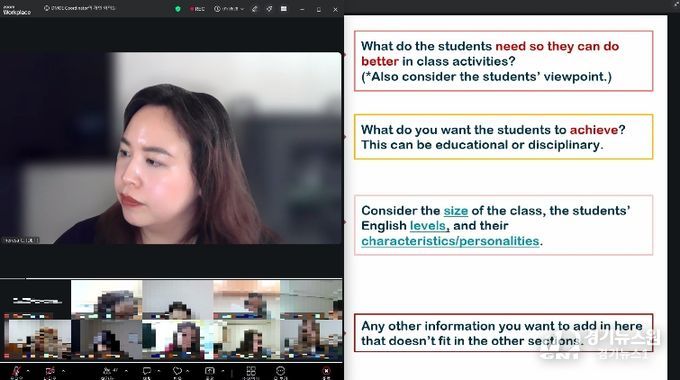 주요 과정은 협력수업의 구조 이해 및 협력교사와 효과적인 수업 운영, 다양한 수준을 반영한 수업 설계 및 맞춤형 교실 수업 방안, 한국 학생의 정서·심리 이해, 영어 캠프 운영, 수업 운영 사례 및 교실 상황별 시나리오, 한국 학교문화 이해 등으로 구성됐으며 총 12시간 동안 실시됐다.