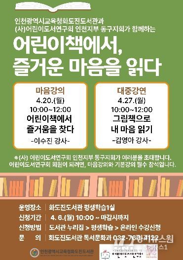 [경기뉴스원/경기뉴스1] | 인천광역시교육청화도진도서관은 (사)어린이도서연구회 인천지부 동구지회와 협력하여 ‘어린이책에서, 즐거운 마음을 읽다’프로그램을 운영한다.