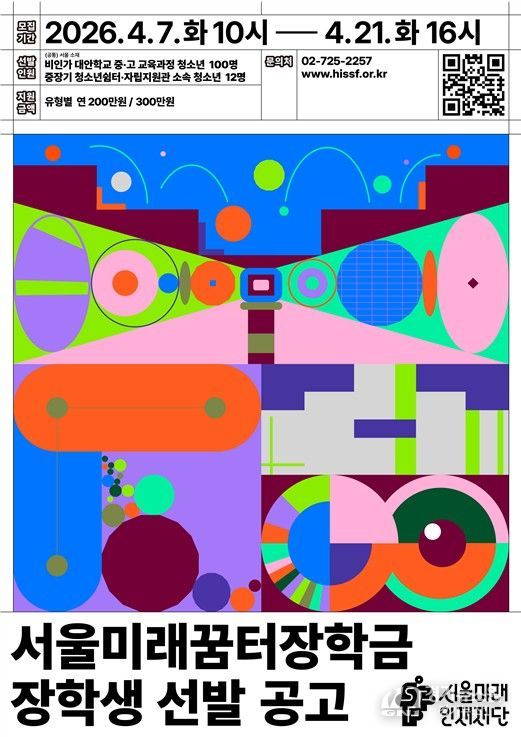 [경기뉴스원/경기뉴스1] | 서울미래인재재단은 기존 서울꿈길장학금의 지원 대상을 확대하고 유형을 세분화하여 ‘서울미래꿈터장학금’을 신설한다. 재단은 비인가 대안학교 재학생은 물론 가정 밖 청소년까지 총 112명을 선발하고, 총 2억 3,600만 원 규모의 학업 장려금을 지원할 계획이다.