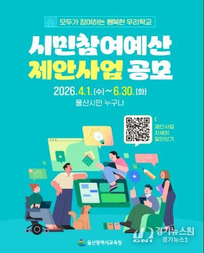 [경기뉴스원/경기뉴스1] | 울산광역시교육청은 시민들의 참신한 생각을 내년도 예산에 반영할 ‘시민 참여 예산 제안 사업 생각(아이디어)’를 오는 6월 말까지 공모한다.