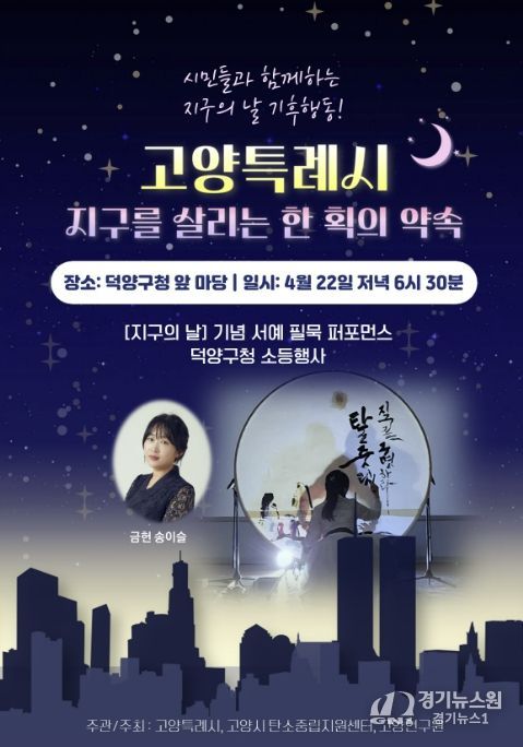 [경기뉴스원/경기뉴스1] | 고양특례시가 제56주년 지구의 날을 기념해, 오는 22일 저녁 8시부터 10분간 고양시 전역에서 소등행사를 진행한다.