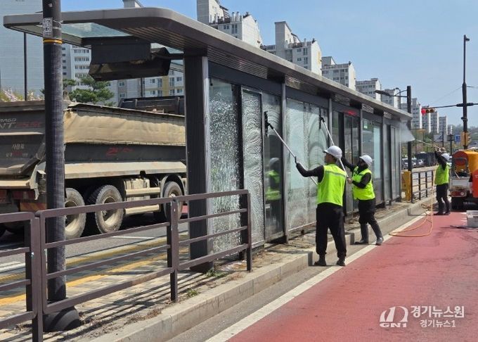 [경기뉴스원/경기뉴스1] | 고양특례시 덕양구는 지난 14~17일 4일간 간선급행버스체계(BRT) 승강장에 대한 고압 물 세척으로 대중교통 환경을 정비했다.