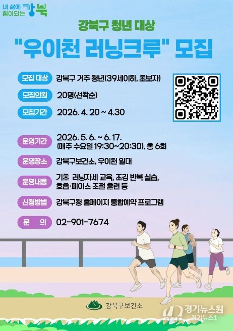 [경기뉴스원/경기뉴스1] | 서울 강북구가 청년층의 건강 증진과 생활 속 운동 습관 형성을 위해 ‘청년 러닝크루’ 참여자를 모집한다.
