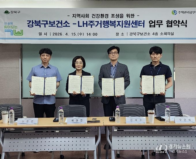 [경기뉴스원/경기뉴스1] | 서울 강북구는 지난 15일 강북구보건소에서 번동2·3·5단지 LH주거행복지원센터와 지역사회 건강환경 조성을 위한 업무협약(MOU)을 체결했다고 밝혔다.