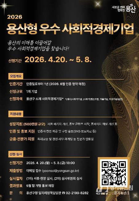 [경기뉴스원/경기뉴스1] | 서울 용산구가 지역사회에 기여한 우수 사회적경제기업을 발굴·인증하고 체계적으로 육성하는 사업에 본격 착수했다.