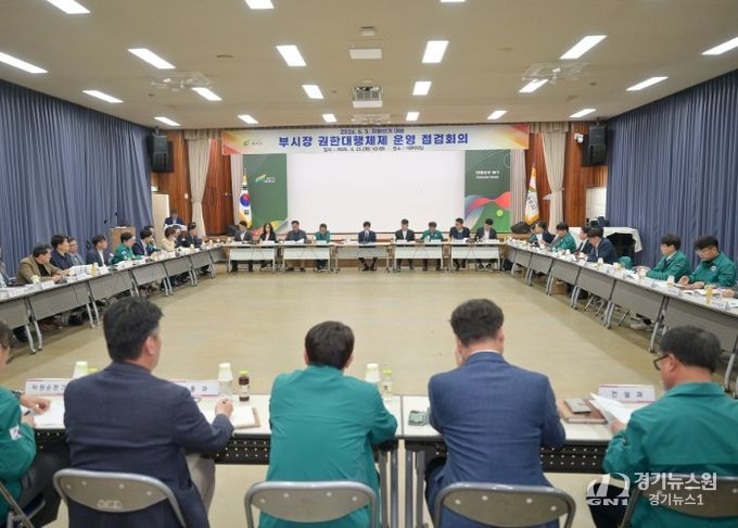 [경기뉴스원/경기뉴스1] | 여주시는 지난 4월 21일 시청 4층 대회의실에서 김광덕 부시장 주재로 ‘부시장 권한대행체제 운영 점검회의’를 개최했다. 이번 회의는 20일 여주시장이 제9회 전국동시지방선거 시장예비후보로 등록함에 따라 부시장 권한대행 체제 전환으로 시정의 안정과 업무의 연속성을 유지하고 행정 공백을 최소화하고자 마련했다.