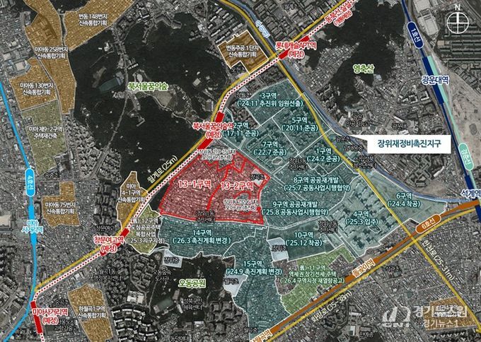 [경기뉴스원/경기뉴스1] | 서울시가 장위 재정비촉진지구의 마지막 남은 재개발 지역인 ‘장위동 219-90 일대(13-1구역), 장위동 224-12 일대(13-2구역)’의 신속통합기획을 확정(5,900세대 내외 규모, 13-1구역 : 3,400세대, 13-2구역 : 2,500세대)했다. 이로써, 장위 재정비촉진지구 전체의 재정비촉진계획 수립이 완료되어, 장위동 일대가 하나의 생활권으로 연결된 도시 구조로 재편돼 주민의 생활 여건이 한층 개선될 것으로 기대된다.