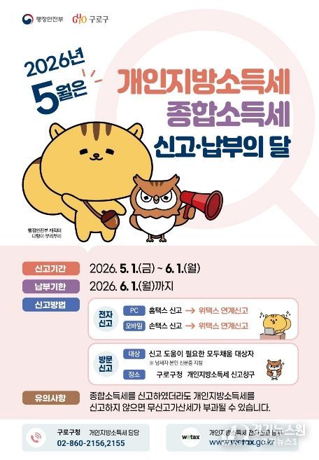 [경기뉴스원/경기뉴스1] | 구로구가 5월 한 달간 개인지방소득세(종합소득) 신고·납부 기간을 운영한다.