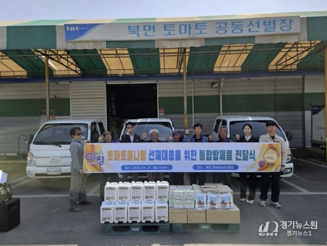 [경기뉴스원/경기뉴스1] | 가평군은 최근 북면 토마토 공동선별장에서 토마토 뿔나방 예방을 위한 통합방제물품 전달식을 가졌다.