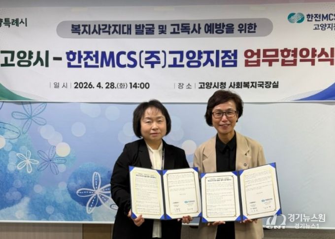 [경기뉴스원/경기뉴스1] | 고양특례시는 지난 28일 시청 사회복지국장실에서 한전MCS(주) 고양지점과 위기가구 발굴 및 지원을 위한 ‘온(溫)마음 복지스위치 ON’ 업무협약을 체결했다.