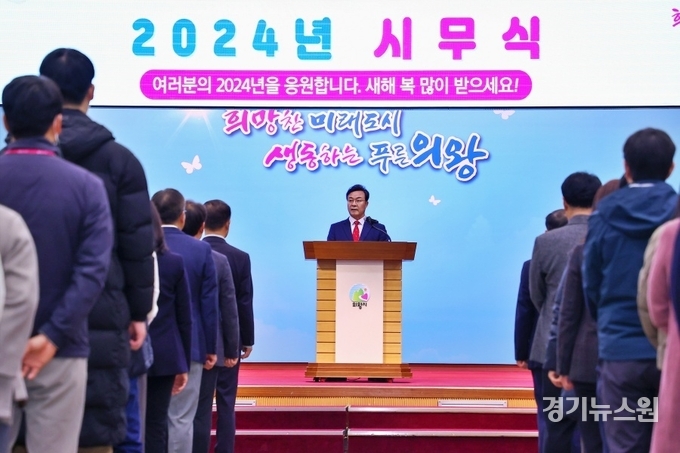 김성제 의왕시장이 2일 대회의실에서 열린 2024년 시무식에서 “전국에서 가장 살기 좋은 명품도시 의왕을 만드는데 혼신의 힘을 다하겠다”는 포부를 밝혔다.
