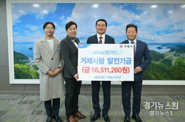 경기뉴스원(경기뉴스1) | NH농협은행 거제시지부는 2월 26일 시장실에서 거제시가 작년 해 법인카드 사용으로 발생한 포인트 적립기금 56,511천원을 전달했다.