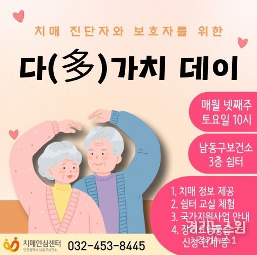 경기뉴스원(경기뉴스1) | 인천시 남동구 치매안심센터는 치매 신규환자 및 보호자를 위한 치매안심센터 만남의 날 ‘다(多)가치데이’를 운영한다고 28일 밝혔다.
