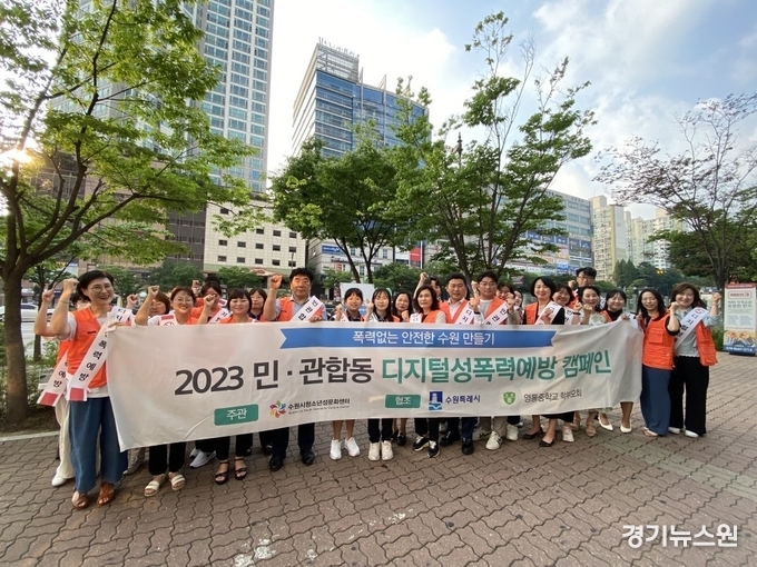 수원시가 19일 영통역 학원가 일대에서 ‘디지털성범죄 예방 캠페인’을 벌였다.