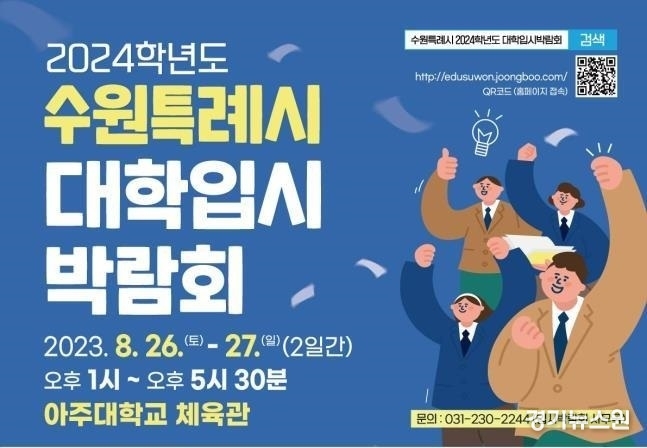 수원시청소년청년재단(이사장 이병규) 청소년희망등대는 8월 26일부터 8월27일까지 2일간 아주대학교 체육관에서 ‘수원특례시 2024학년도 대학입시박람회’를 개최한다.