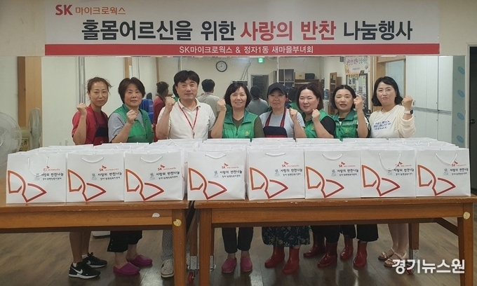 수원시 장안구 정자1동 새마을부녀회가 지난 14일, SK마이크로웍스의 후원을 받아 홀몸 어르신을 위한 '사랑의 반찬' 나눔 행사를 열었다.