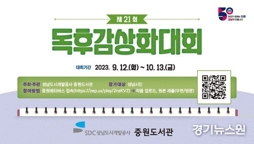 접수된 작품은 외부 전문 위원의 심사를 거쳐 10월 31일 중원도서관 홈페이지에 성남시장상, 성남교육지원청교육장상 등 시상내역이 발표될 예정이다.