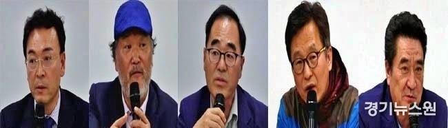 ▲ 백왕순 회장, 노민호 공동대표, 윤창근 전 의장, 백승우 공동대표, 김태진 전 사무국장(사진 왼쪽부터)