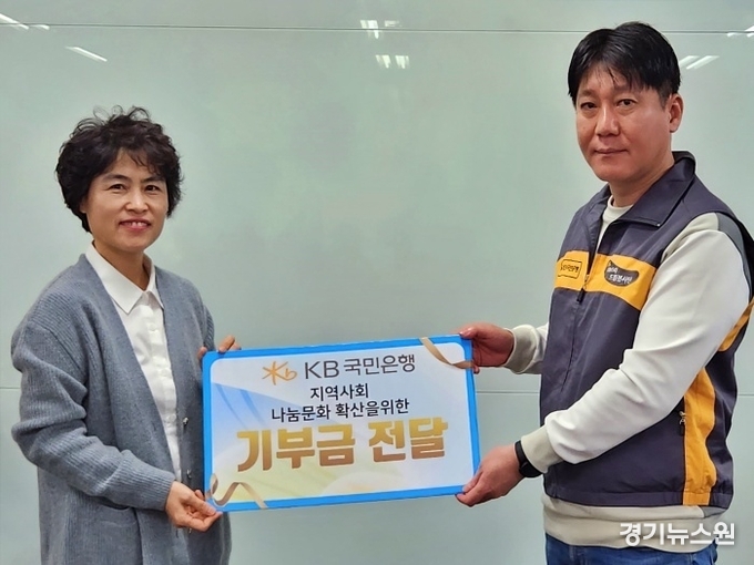 ▲KB국민은행 파장동지점 김우석팀장이 기부금을 전달하고 있다.