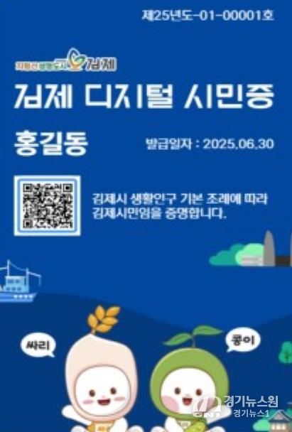 [경기뉴스원/경기뉴스1] | 김제시가 생활인구 확대와 지역 활력 제고를 위해 구축한 ‘지평선생명도시 김제시민제도’ 디지털 시민증이 지난 7월 본격 시행 이후 불과 두 달 만인 8월 말 기준으로 발급자 1만 명을 돌파하는 성과를 거뒀다.