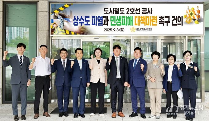 [경기뉴스원/경기뉴스1] | 광주광역시 서구의회는 8일 제333회 제1차 본회의에서 안형주 의원이 대표 발의한 ‘도시철도 2호선 공사 상수도 파열과 민생피해 대책 마련 촉구’ 건의안을 채택했다.