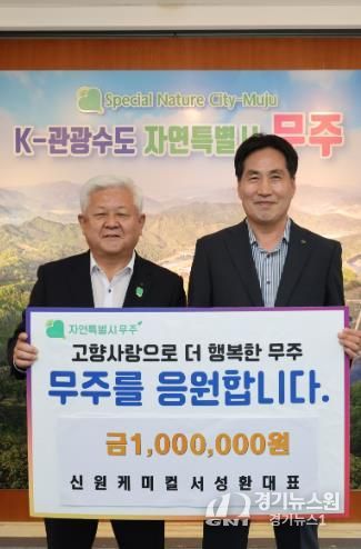 [경기뉴스원/경기뉴스1] | 신원케미칼 서성환 대표가 지난 9일 무주군에 고향사랑기부금 1백만 원을 기탁했다.