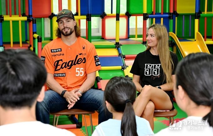 [경기뉴스원/경기뉴스1] | 대전 중구는 지난 14일 한화이글스 ‘라이언 와이스’선수 부부가 아동양육시설인 ‘늘사랑아동센터’에 방문해 입소아동들과 특별한 시간을 함께했다고 밝혔다.