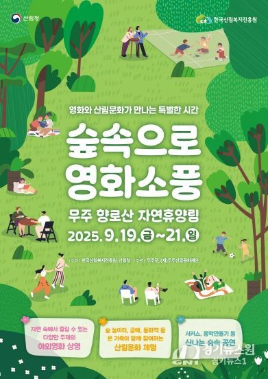 [경기뉴스원/경기뉴스1] | 영화와 산림문화가 만나는 특별한 시간, “숲속으로 영화소풍”이 오는 19일부터 21일까지 무주 향로산 자연휴양림에서 개최된다.