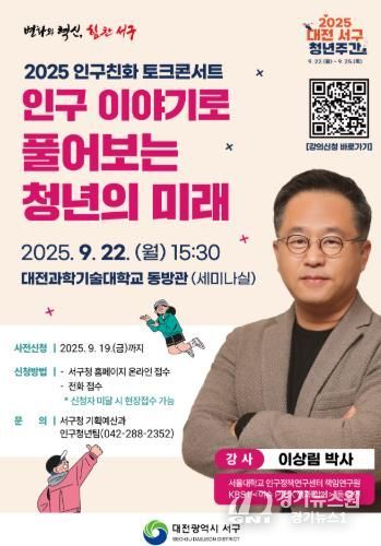 서철모 청장은 “이번 강연은 청년들이 인구 문제를 자신의 삶과 연결해 고민해 볼 기회를 제공할 것”이라며 “서구는 앞으로도 청년과의 소통을 강화하고, 청년의 목소리를 정책에 적극 반영해 인구 문제를 함께 해결해 나가겠다”고 말했다.
