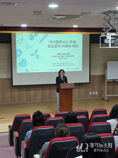 이날 연수에서는 세종충남대학교병원 소아청소년과(호흡기‧알레르기) 김민지 교수가 강사로 나서 급성 과민‧거부 반응(알레르기)과 아나필락시스 이해 및 대처를 주제로 특강을 진행했다.