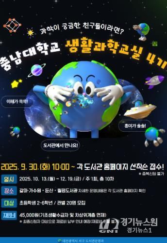 [경기뉴스원/경기뉴스1] | 대전 서구 갈마·가수원·둔산·월평도서관은 지역 어린이들의 과학 창의력과 잠재력을 키우기 위해 2025년 ‘충남대학교 생활과학교실’ 4기를 운영한다고 23일 밝혔다.