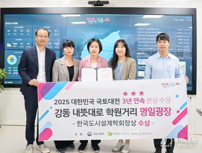 [경기뉴스원/경기뉴스1] | 강동구는 지난 18일 ‘2025 대한민국 국토대전’에서 ‘강동 내뜻대로 학원가 명일광장 조성사업’으로 한국도시설계학회장상을 수상했다고 24일 밝혔다.