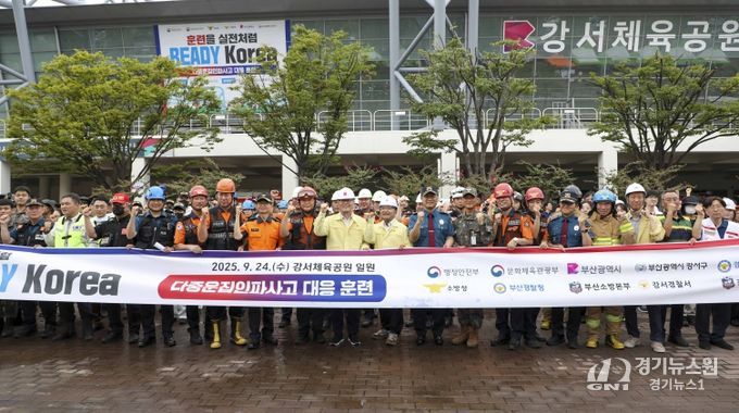 [경기뉴스원/경기뉴스1] | 부산 강서구는 9월 24일, 강서체육공원 일원에서 행정안전부, 부산광역시 및 25개 관계기관과 함께 올해 세 번째 '레디 코리아(READY Korea) 훈련'을 실시했다.