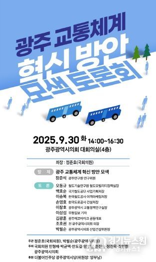 정준호 국회의원(광주 북구갑)과 박필순 광주시의원(첨단1동·2동)은 30일 광주시의회 대회의실에서 ‘광주 교통체계 혁신 방안 모색 토론회’를 개최한다고 밝혔다.