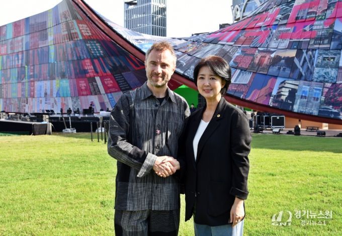 [경기뉴스원/경기뉴스1] | 제5회 서울도시건축비엔날레 개최를 하루 앞둔 9월 25일 옥재은 서울시의원(중구2, 국민의힘)은 세계적인 건축가이며 총감독인 토마스 헤더윅과 함께 이번 비엔날레의 주요 행사장 중 하나인 송현광장(열린송현녹지광장)을 방문하여 현장 점검에 나섰다.
