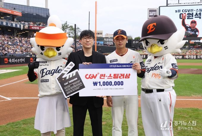 [경기뉴스원/경기뉴스1] | KBO와 CGV가 공동 제정한 ‘월간 CGV 씬-스틸러상’의 9월 수상자로 한화 이글스의 이원석이 선정됐다.