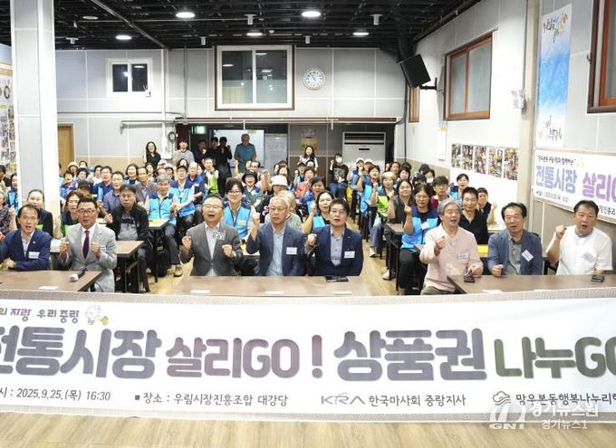 [경기뉴스원/경기뉴스1] | 중랑구 망우본동은 9월 25일 망우본동 우림시장진흥조합 대강당에서 ‘전통시장 살리GO! 상품권 나누GO!’ 행사를 열었다.
