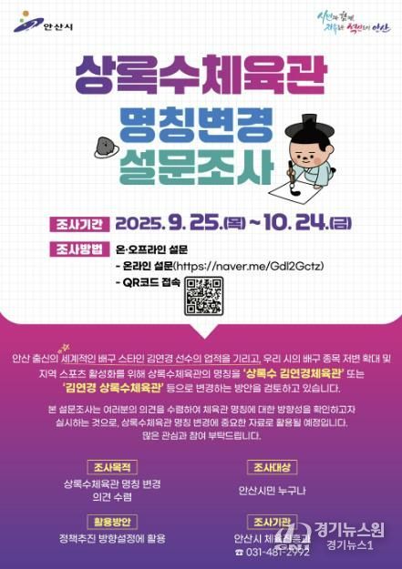 [경기뉴스원/경기뉴스1] | 안산시는 내달 24일까지 ‘상록수체육관’ 명칭 변경 설문조사를 실시한다고 30일 밝혔다.