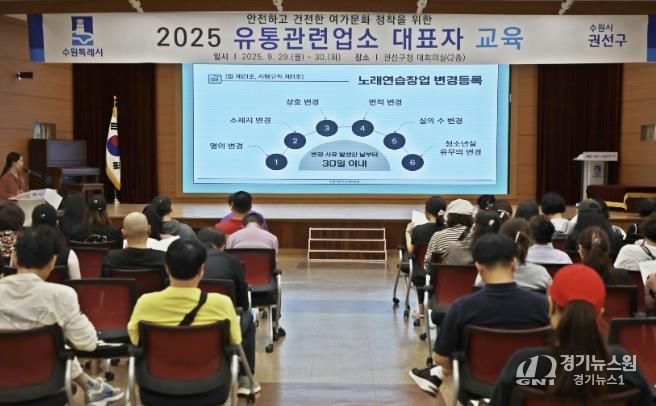 [경기뉴스원/경기뉴스1] | 수원시 권선구는 지난 9월 29일부터 30일까지 이틀간 구청 대회의실에서 ‘2025년 유통관련업소 대표자 교육’을 실시했다.
