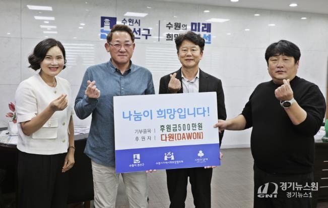[경기뉴스원/경기뉴스1] | 수원시 권선구는 지난 29일, 관내 기업 다원에서 후원금 오백만원을 기탁했다고 밝혔다.