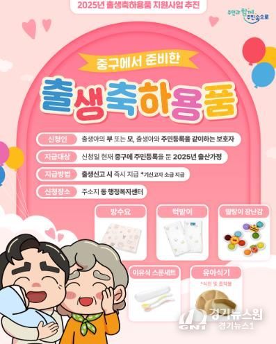 [경기뉴스원/경기뉴스1] | 대전 중구는 출산가정을 대상으로 출생축하용품 지원 사업을 지속적으로 추진하며, 아이 낳고 키우기 좋은 지역사회 조성에 힘쓰고 있다고 밝혔다.