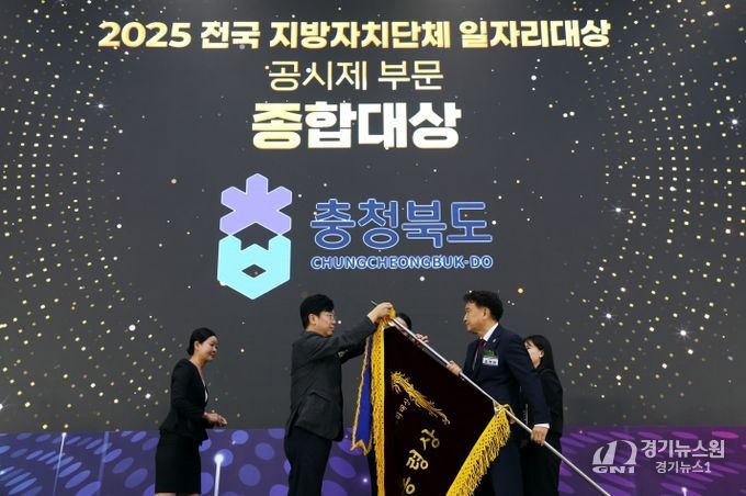 [경기뉴스원/경기뉴스1] | 충북도는 30일 고용노동부 주최로 청주오스코 그랜드볼룸에서 열린 ‘2025년 전국 지방자치 단체 일자리 대상’에서 지자체 중 전국 1위로 종합 대상인 ‘대통령상’을 수상했다고 밝혔다.