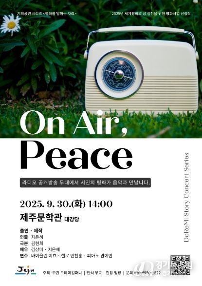 [경기뉴스원/경기뉴스1] | 라디오 공개방송 형식으로 꾸며지는 음악극 ‘스토리 콘서트 'On Air, Peace'’가 30일 오후 2시 제주문학관 대강당에서 막을 올린다.