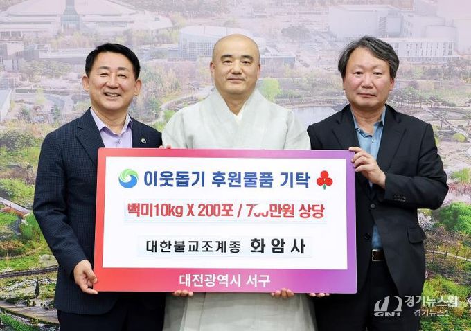 [경기뉴스원/경기뉴스1] | 대전 서구는 지난 30일 화암사로부터 백미 10kg 200포(750만 원 상당)를 기탁받았다고 1일 전했다.